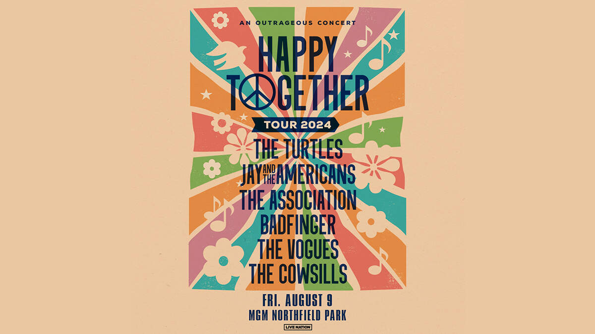 Happy Together Tour comes to MGM Northfield Park on Friday, August 9 at 7:30 PM featuring: The Turtles, Jay and The Americans, The Association, Badfinger, The Vogues and the Cowsills! For complete show details and to purchase your tickets, click HERE!