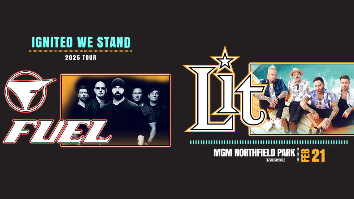 Lit & Fuel bring their Ignited We Stand 2025 Tour to MGM Northfield Park on Friday February 21! For complete show details and to purchase your tickets, click HERE starting Friday, November 1 at 10:00 AM!