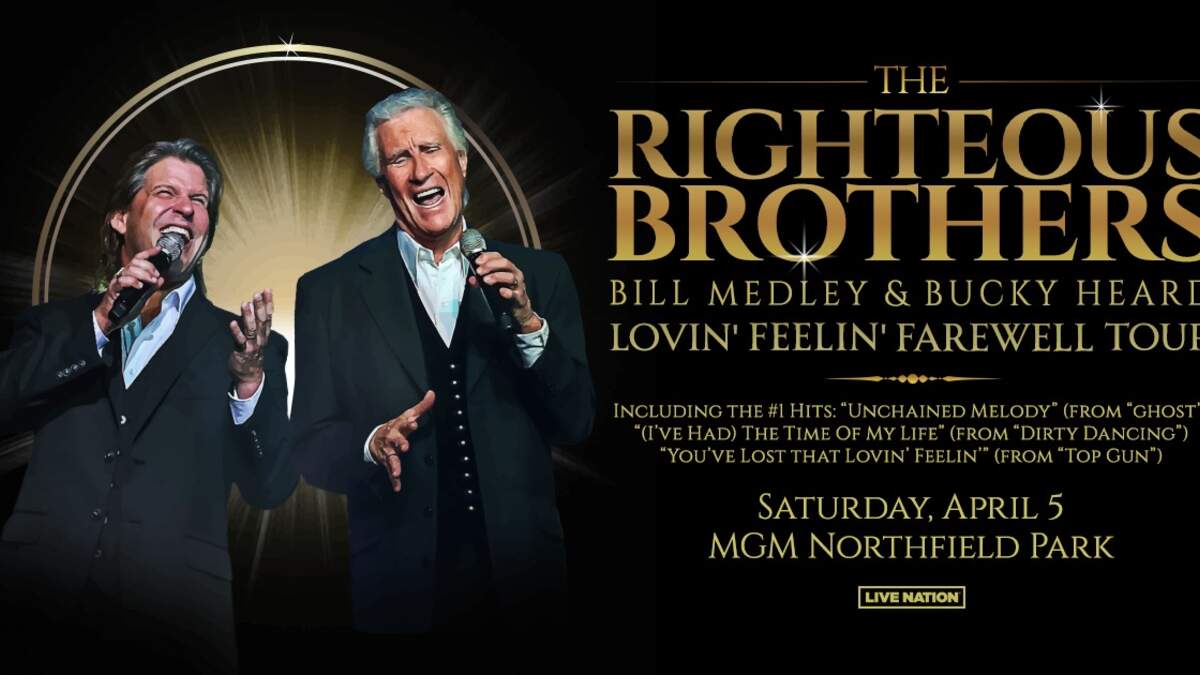 The Righteous Brothers of Bill Medley & Bucky Heard brings their Lovin' Feelin' Farewell Tour to MGM Northfield Park on Saturday, April 5 at 7:30 PM! For complete show details and to purchase your tickets, click HERE starting Friday, December 13 at 10:00 AM!